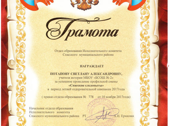 Учитель истории МБОУ "БСОШ № 2"